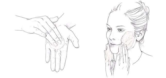 Matin et soir, faire mousser légèrement sur peau humide, laisser agir quelques instants, puis rincer à l’eau tiède.