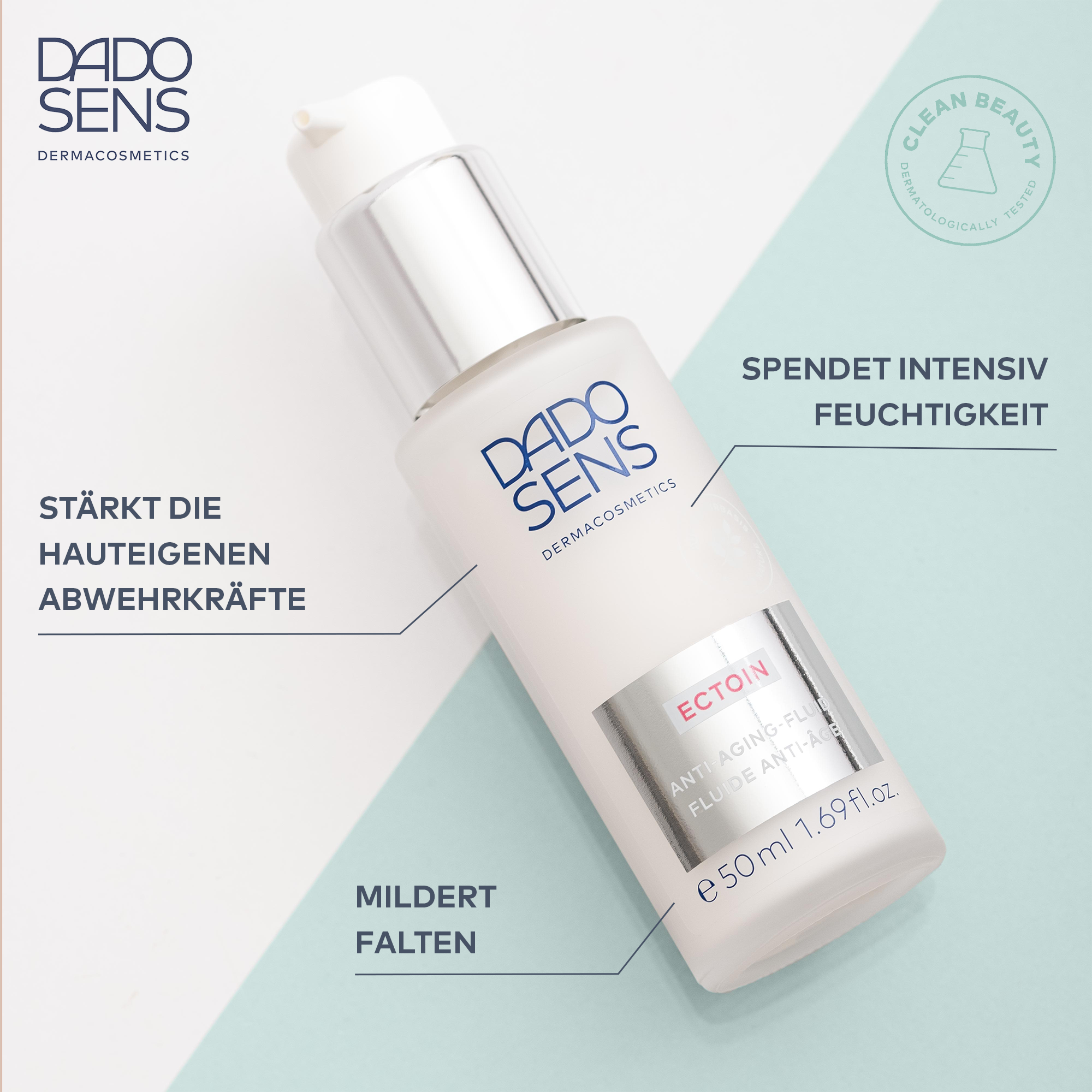 Das ECTOIN Anti-Aging-Fluid spendet intensiv Feuchtigkeit. Mildert Falten bei sensibler und regenerationsbedürftiger Haut und stärkt die hauteigenen Abwehrkräfte.